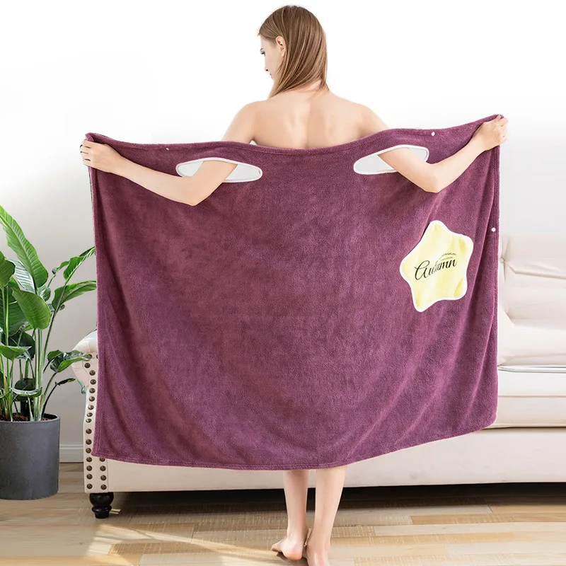 Do you need a towel where you can easily and comfortably dry off after taking a bath? No more falling towels, embarrassing scenes, and slippery floor on the way from the bathroom to the kitchen with our 2-in-1 Towel Dress. No more having to hold your towel up!